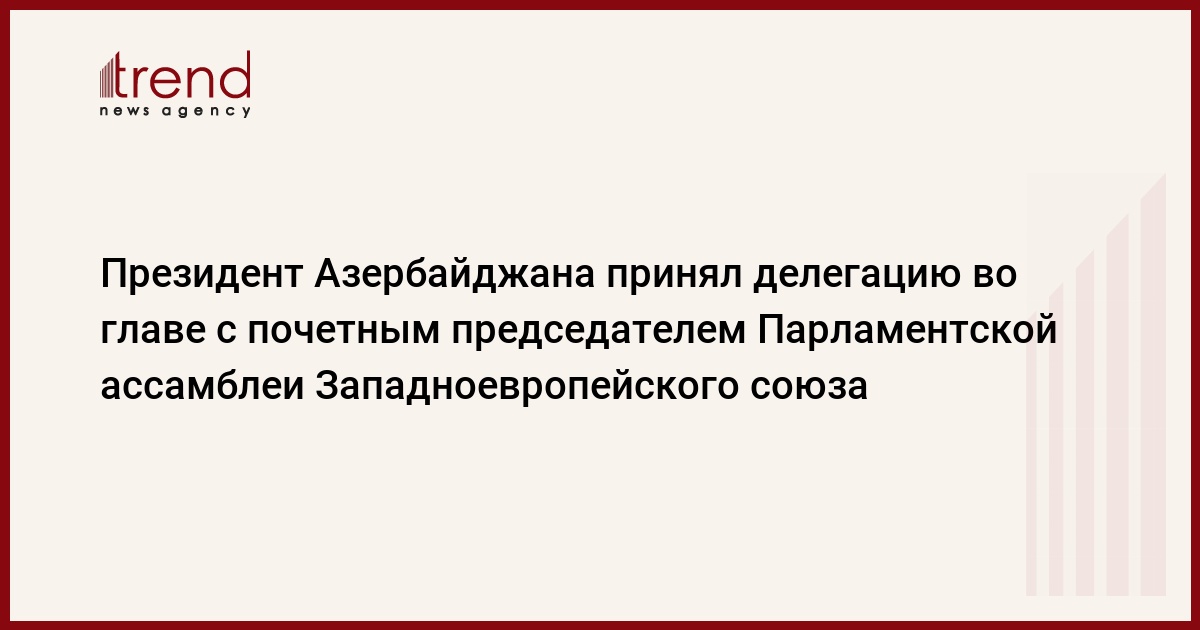 Азербайджан, Баку, 26 августа / Trend / Президент Азербайджана Ильхам Алиев во вторник принял делегацию во главе с почетным председателем Парламентской ассамблеи Западноевропейского союза Стефаном Горисом.