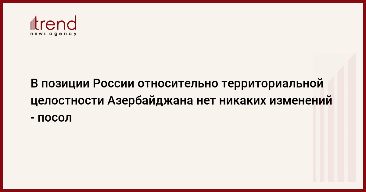 Азербайджан, Баку, 26 августа /корр. Trend Дж.Бабаева/ У России нет никакого изменения к ранее заявленной позиции относительно уважения территориальной целостности Азербайджана, сказал во вторник журналистам посол РФ в Азербайджане Василий Истратов.