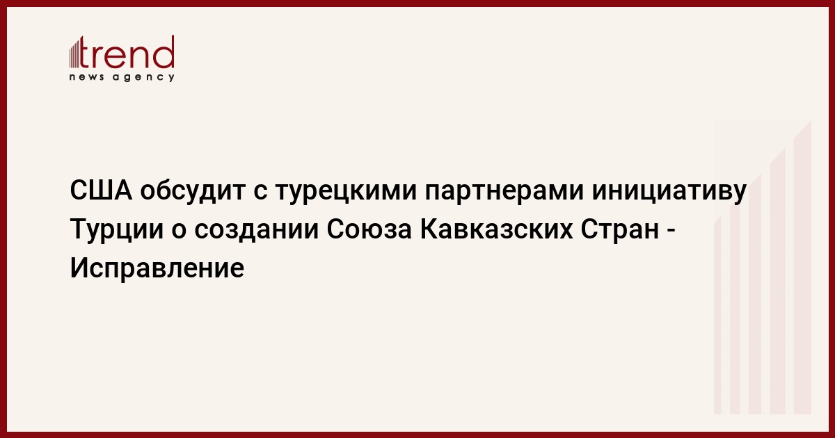Азербайджан, Баку, 26 августа / Trend / В материале Trend от 26 августа под названием "США поддерживают инициативу Турции о создании Кавказского Союза" неверно были истолкованы слова посла США в Азербайджане Энн Дерси.
