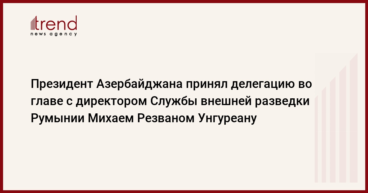 Азербайджан, Баку, 27 августа / Trend / Президент Азербайджана Ильхам Алиев в среду принял делегацию во главе с директором Службы внешней разведки Румынии Михаем Резваном Унгуреану.