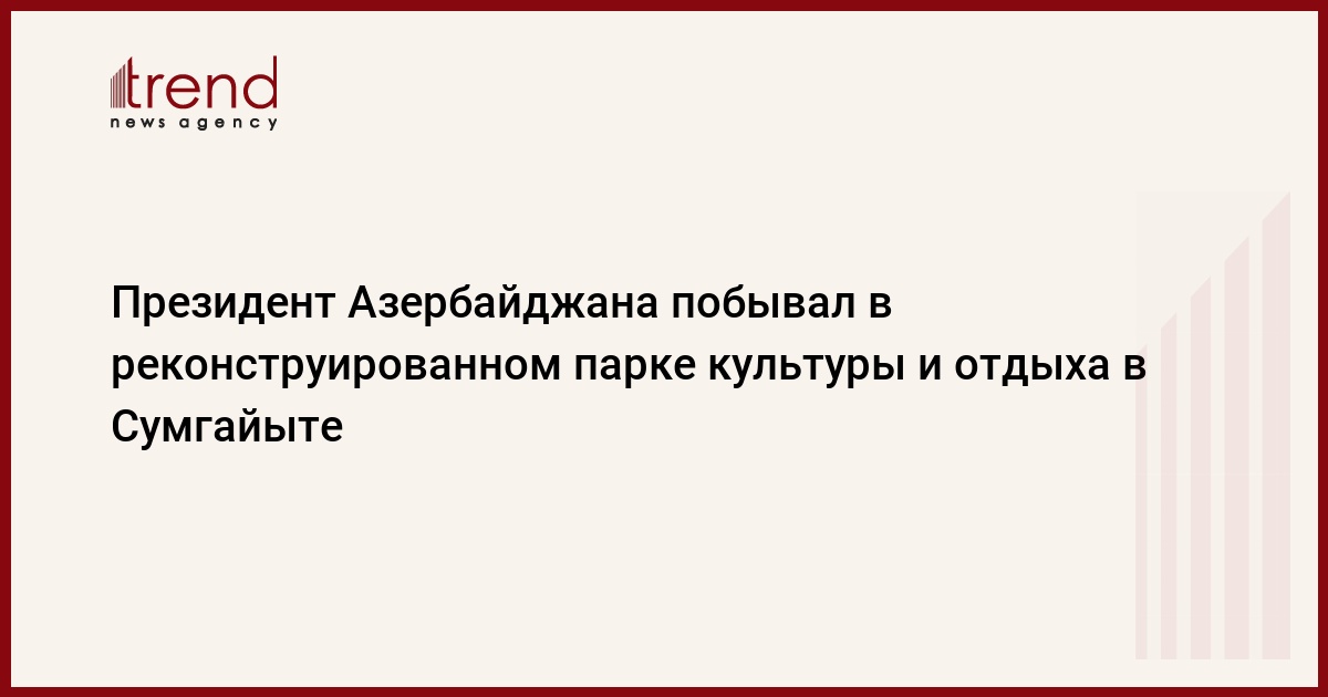 Азербайджан, Баку, 28 августа / Trend / Президент Азербайджана Ильхам Алиев побывал в реконструированном парке культуры и отдыха имени Насими в городе Сумгайыте.