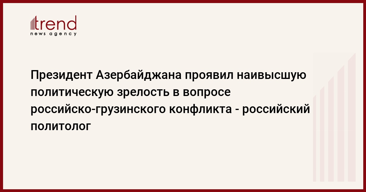 Россия, Москва, 29 августа /корр. Trend Р.Агаев/ Президент Азербайджана Ильхам Алиев проявил наивысшую политическую зрелость в вопросе конфликта между Россией и Грузией и не вовлекся в спешно инициированную Западом антироссийскую кампанию, считает заведующий отделом Кавказа Института стран СНГ Михаил Александров. "Таким образом, позиция Азербайджана была позитивной и в определенном смысле даже показательной", - сказал на дискуссии "Россия-Грузия-США: война за ресурсы?" в Москве Александров.