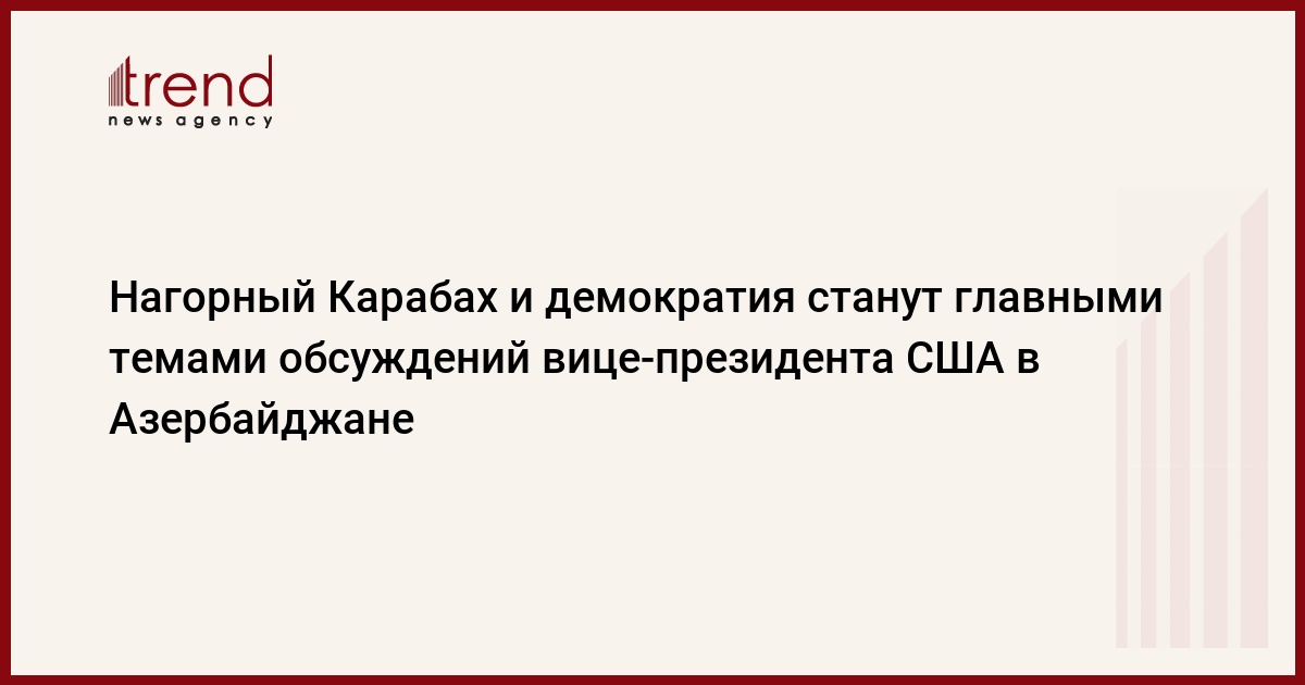 Азербайджан, Баку, 30 августа /корр. Trend Дж.Бабаева/ Урегулирование армяно-азербайджанского Нагорно-Карабахского конфликта мирным путем, поддержка США усилий по укреплению демократии и верховенства закона в Азербайджане, где в ближайшем будущем пройдут президентские выборы, станут главными темами переговоров вице-президента США Дика Чейни в Азербайджане. Об этом говорится в сообщении администрации Белого дома.