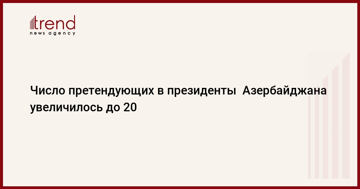 Справка Trend : Президентские выборы в Азербайджане намечены на 15 октября. До сих пор ЦИК утвердила кандидатуры 18 человек. Среди них представитель от правящей партии "Ени Азербайджан", нынешний президент страны Ильхам Алиев, председатель партии "Умид" Игбал Агазаде, председатель партии "Муасир мусават" Хафиз Гаджиев, председатель Партии народного фронта за целостный Азербайджан Гудрат Гасангулиев, председатель Либерально-демократической партии Фуад Алиев, глава Партии зеленых Маис Гюльалиев, лидер Партии великого спасения Фазиль Газанфароглу, ученый Теймур Гулиев, безработный Яшар Ахмедов, пенсионер Алимухтар Акберов, санитарка Севиндж Гулиева, врач Вугар Сеидов, главный редактор газеты "Экспертиза" Сулейман Гулиев, бывший председатель Верховного меджлиса Партии народного фронта Азербайджана Гуламгусейн Алиев, а также самовыдвиженцы Ариф Алиев и Али Агаев, нейтральный Фикрет Ахадов.