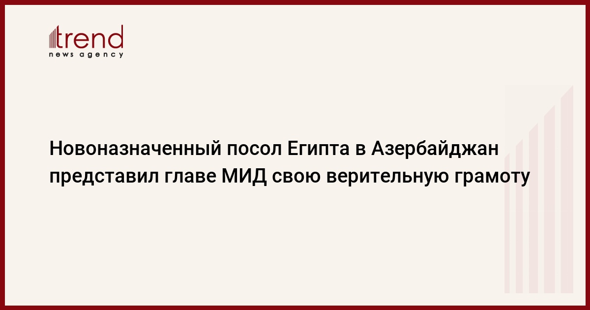 Азербайджан, Баку, 2 сентября /корр. Trend И.Ализаде/ Новоназначенный посол Египта в Азербайджан Сабир Мансур во вторник представил главе МИД Эльмару Мамедъярову свою верительную грамоту. Об этом Trend сообщили в пресс-службе Министерства иностранных дел.
