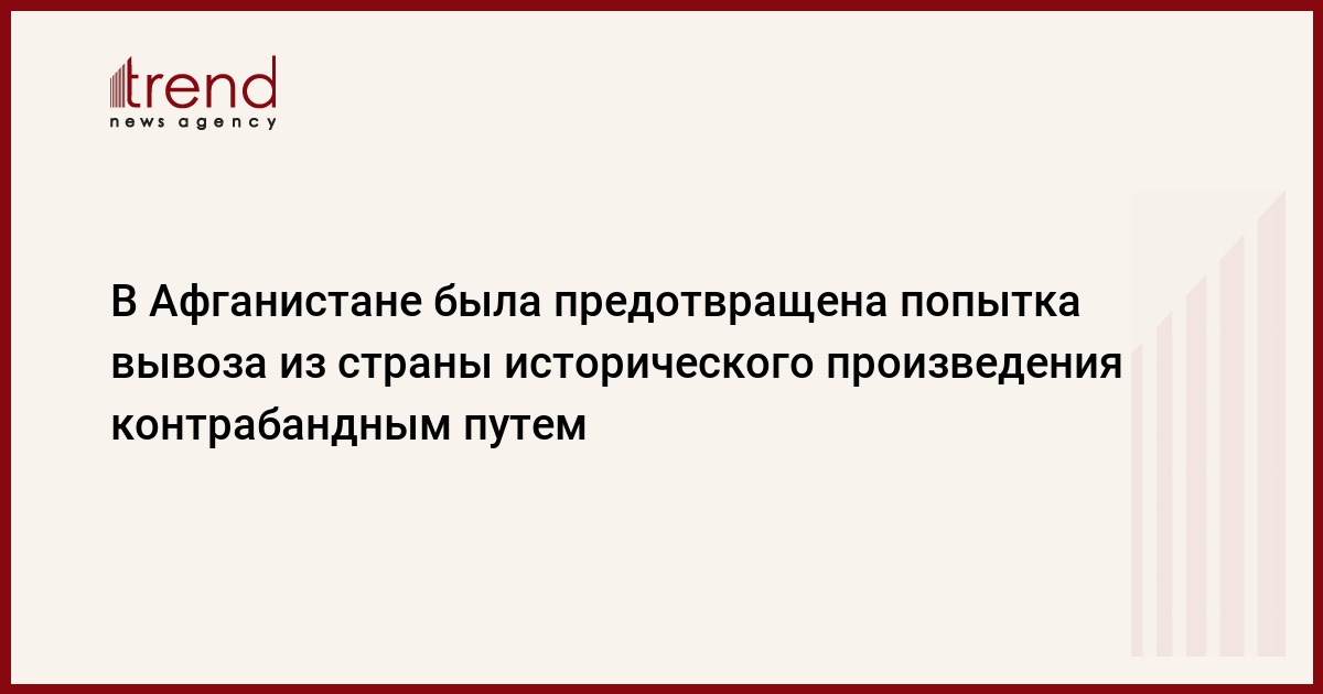 Афганистан, Кабул, 10 сентября /корр. Trend А.Хакими/ Как сообщил председатель Управления защиты исторических памятников провинции Кандагар Афганистана, была предотвращена попытка вывоза из страны статуи Будды, имеющую 2-тысячелетнюю историю. По его словам, историческое произведение искусства было изъято у контрабандистов в селе Санзери провинции Кандагар.