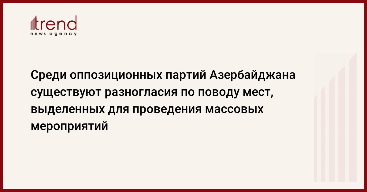 Азербайджан, Баку, 10 сентября /корр. Trend Дж.Бабаева/ Среди оппозиционных партий Азербайджана существуют разногласия по поводу мест, выделенных для проведения массовых мероприятий.