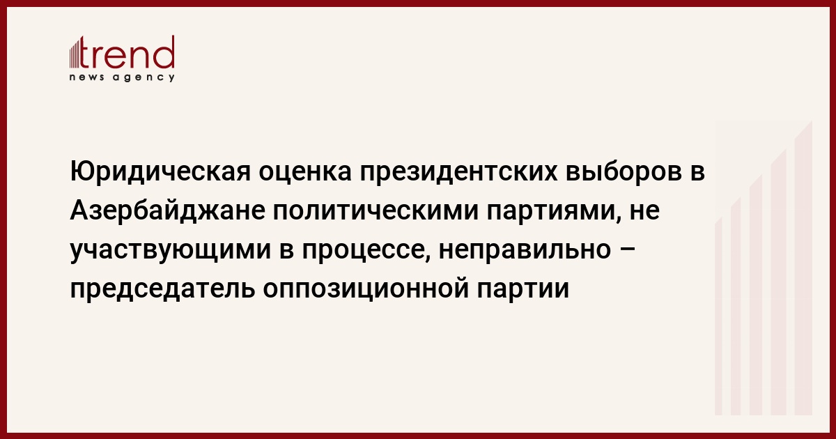 Азербайджан, Баку, 11 сентября /корр. Trend Дж.Бабаева/ Оппозиционная Национал-демократическая партия Азербайджана (НДПА) считает неправильным заблаговременную юридическую оценку президентских выборов Азербайджана политическими партиями, не участвующими в данном процессе.