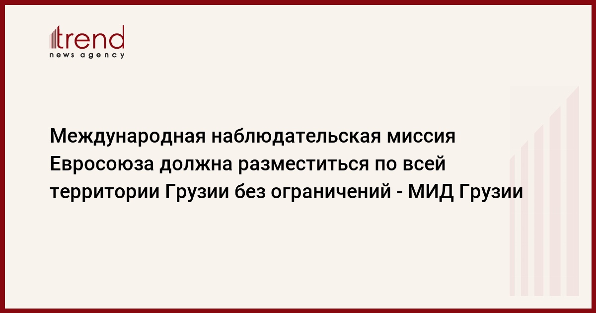 Грузия, Тбилиси, 12 сентября /корр. Trend Н.Кирцхалиа/ Международная наблюдательская миссия Евросоюза должна разместиться по всей территории Грузии без каких-либо ограничений, об этом журналистам заявила министр иностранных дел страны Эка Ткешелашвили.