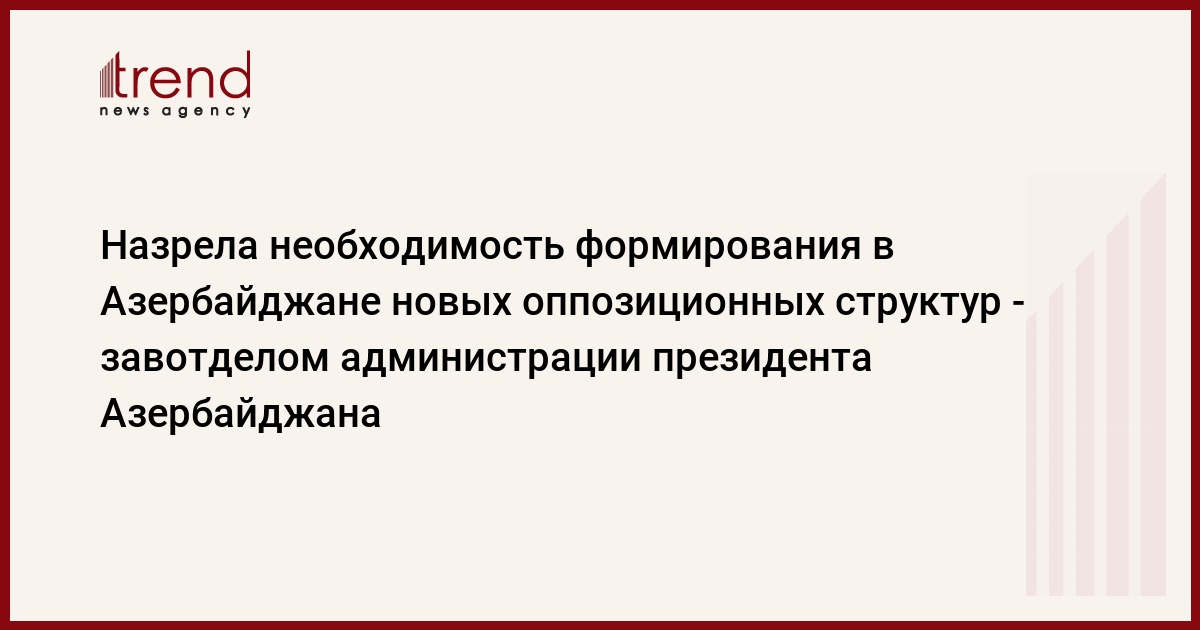 Азербайджан, Баку, 23 сентября /корр. Trend И.Ализаде/ Назрела необходимость в формировании в Азербайджане новых оппозиционных структур, считают власти Азербайджана.