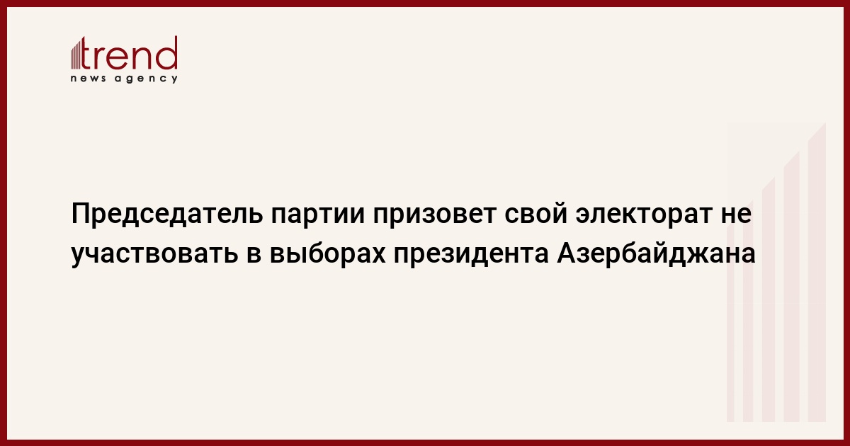 Азербайджан, Баку, 23 сентября /корр. Trend News Дж.Бабаева/ Председатель Партии зеленых Азербайджана Маис Гюльалиев, чья кандидатура в президенты не была зарегистрирована, призовет свой электорат не участвовать в выборах.
