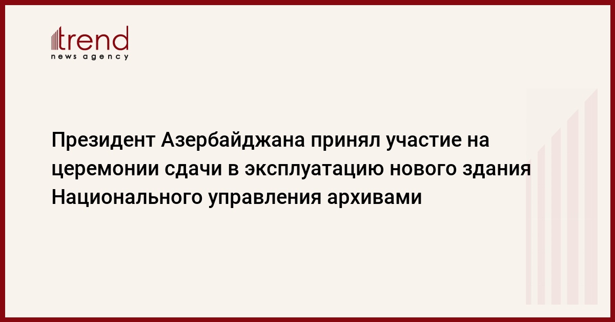 Азербайджан, Баку, 09 октября / Trend / В четверг президент Азербайджана Ильхам Алиев принял участие на церемонии сдачи в эксплуатацию нового здания Национального управления архивами Азербайджанской Республики, находящегося на проспекте Метбуат, квартал 593.