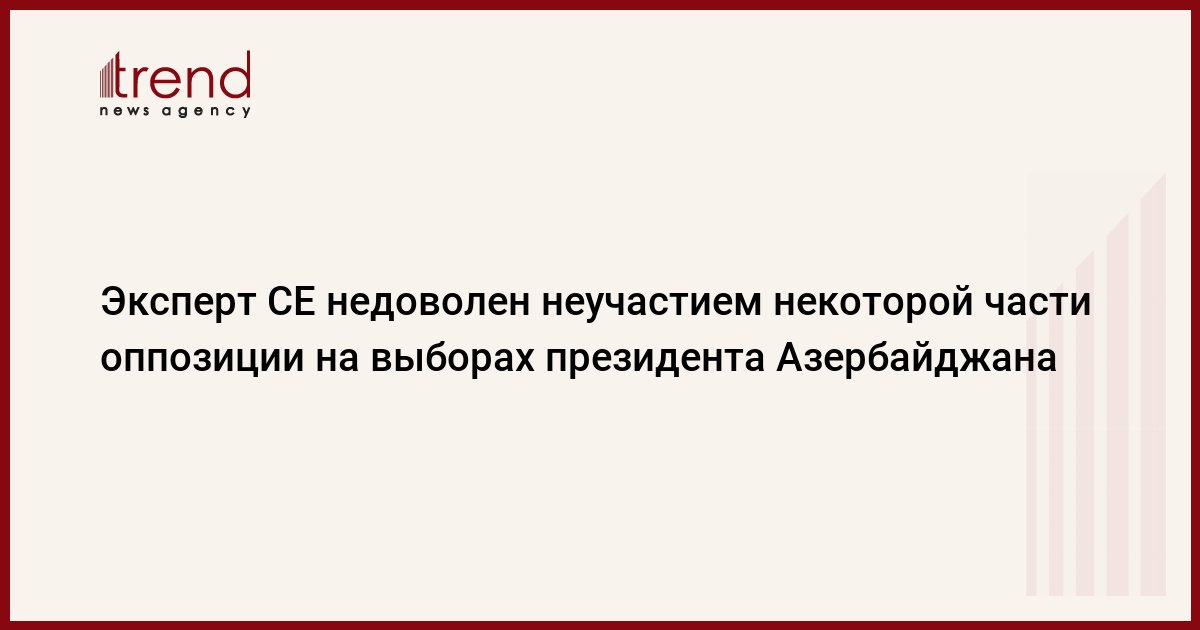 Азербайджан, Баку, 14 октября /корр. Trend Н.Абдуллаева/ Эксперт Совета Европы (СЕ) недоволен неучастием части оппозиции на выборах президента Азербайджана.