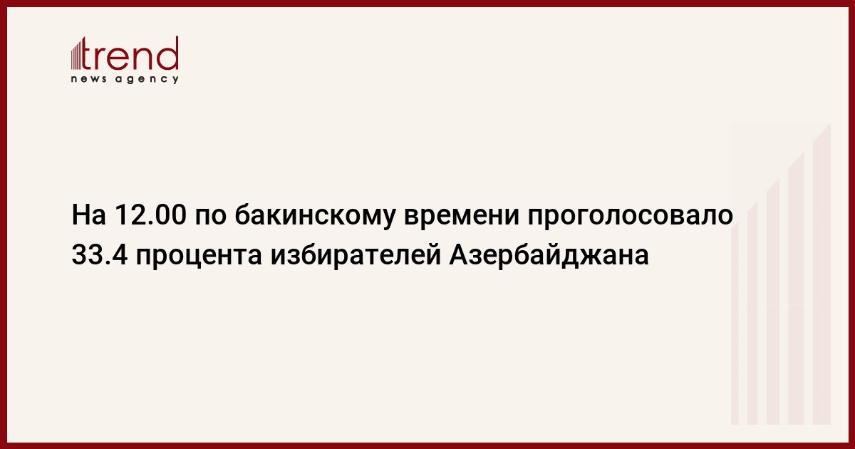 в Азербайджане проголосовало 1 623 775 избирателей, то есть 33.4 процента от общего числа, сообщили в пресс-центре ЦИК Азербайджана.