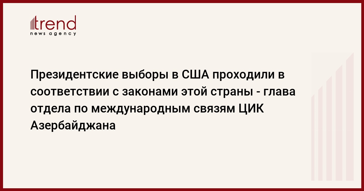Азербайджан, Баку, 5 ноября / Trend / Президентские выборы в США проходили в соответствии с законами и конституцией этой страны, сообщил Trend по телефону из США глава отдела по международным связям ЦИК Азербайджана Ровзат Гасымов.