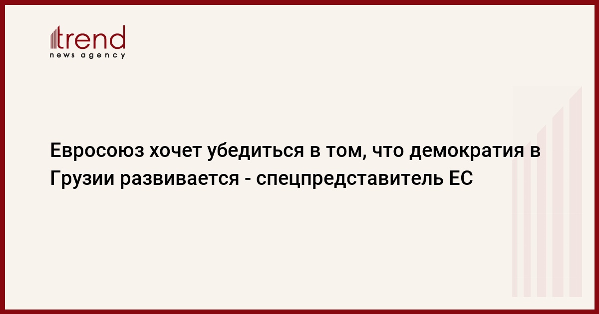 Грузия, Тбилиси, 6 ноября /корр. Trend Н.Кирцхалиа/ Европейский союз намерен убедиться в том, что демократия в Грузии развивается. Об этом по окончании встречи с председателем парламентского комитета по защите прав человека Гией Арсенишвили сказал специальный представитель ЕС на Южном Кавказе Питер Семнеби.