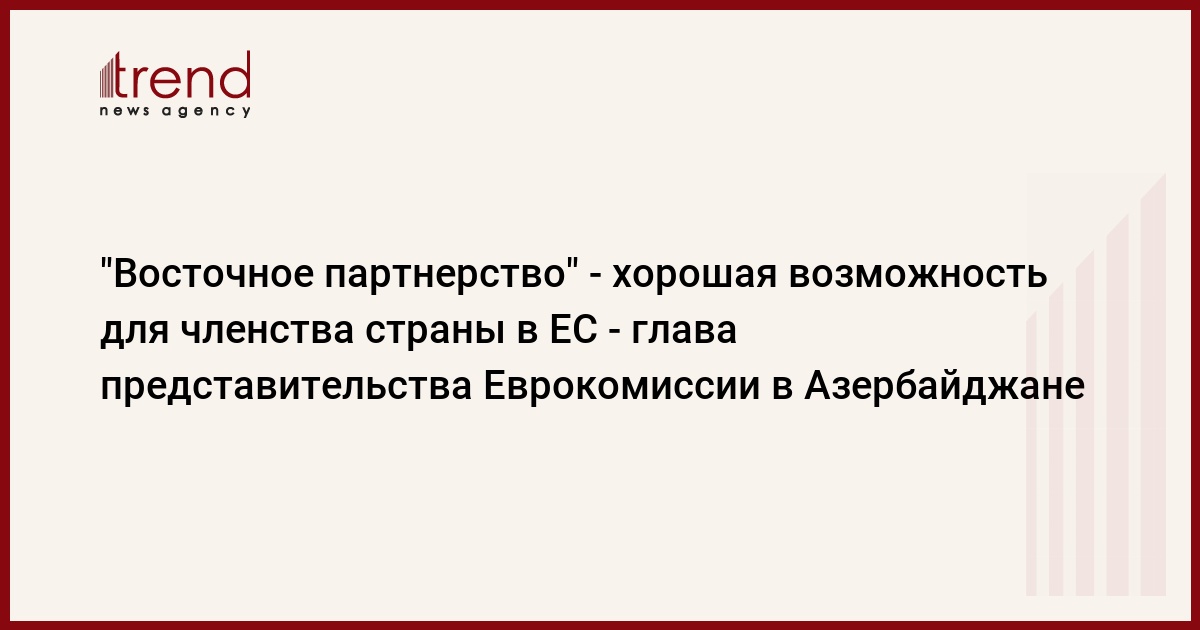 Азербайджан, Баку, 26 ноября /корр. Trend Р.Новрузов/ Глава представительства Еврокомиссии в Азербайджане считает "Восточное партнерство" хорошей возможностью для членства страны в ЕС.