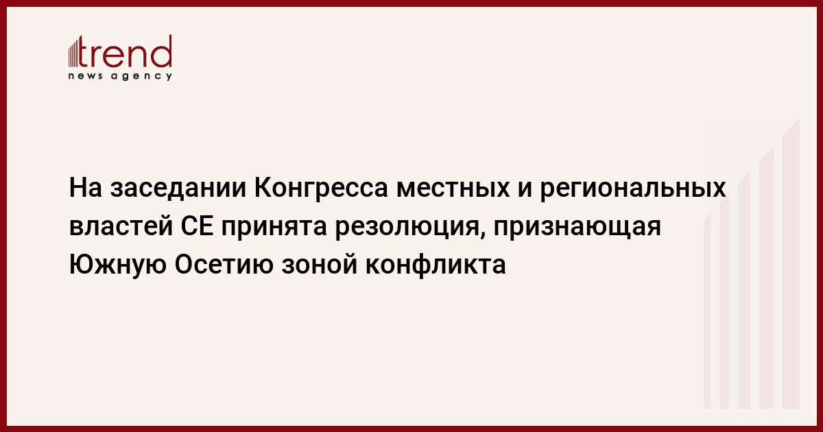 Согласно резолюции, принятой сегодня на заседании Конгресса местных и региональных властей Совета Европы, зоной конфликта считается Южная Осетия, сказала Trend глава российской делегации в Конгрессе местных и региональных властей Совета Европы Светлана Орлова.