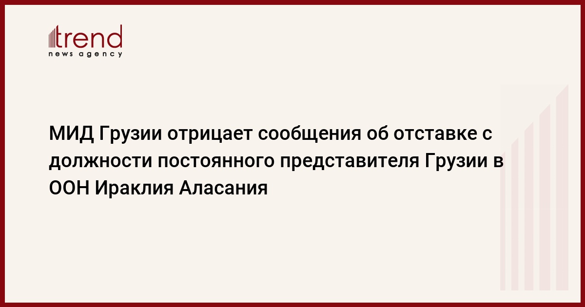 Грузия, Тбилиси, 4 декабря /корр. Trend Н. Кирцхалиа/ МИД Грузии опровергает сообщения об отставке с поста постоянного представителя Грузии в ООН Ираклия Аласания. "Эта информация не соответствует действительности", - сказала Trend руководитель департамента прессы и информации МИД Грузии Хатуна Иосава.