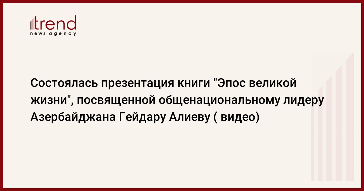 Азербайджан, Баку, 11 декабря /корр. Trend А.Гусейнбала / Состоялась презентация книги народного поэта Залимхана Ягуба "Эпос великой жизни" ("Бейюк омрун дастаны"), посвященной общенациональному лидеру Азербайджана Гейдару Алиеву.