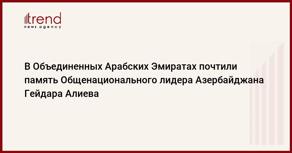 Азербайджан, Баку, 11 декабря /корр. Trend Дж.Бабаева/ При организации общества "Азербайджан" в Объединенных Арабских Эмиратах в Дубае состоялась церемония памяти Общенационального лидера Азербайджана Гейдара Алиева, сообщили Trend в пресс-службе Госкомитета по работе с диаспорой Азербайджана.
