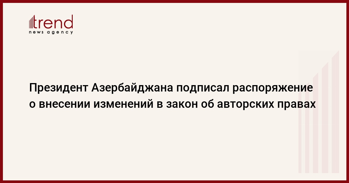 Азербайджан, Баку, 12 декабря / Trend / Президент Азербайджана Ильхам Алиев подписал распоряжение о внесении изменений и дополнений в закон "Об авторских правах и сопутствующих правах".
