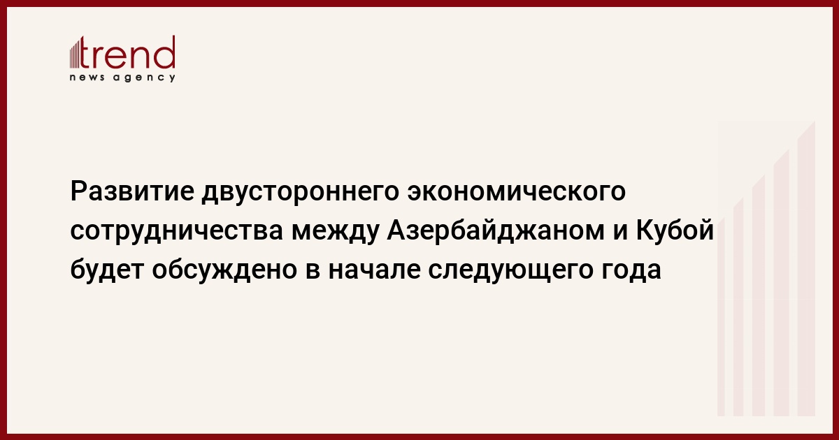 Азербайджан, Баку, 15 декабря /корр. Trend Н.Абдуллаева/ Проведение второго заседания межправительственной комиссии по экономическому сотрудничеству между Азербайджаном и Кубой планируется в январе следующего года, сообщил в понедельник Trend посол Кубы в Азербайджане Марсело Торес.