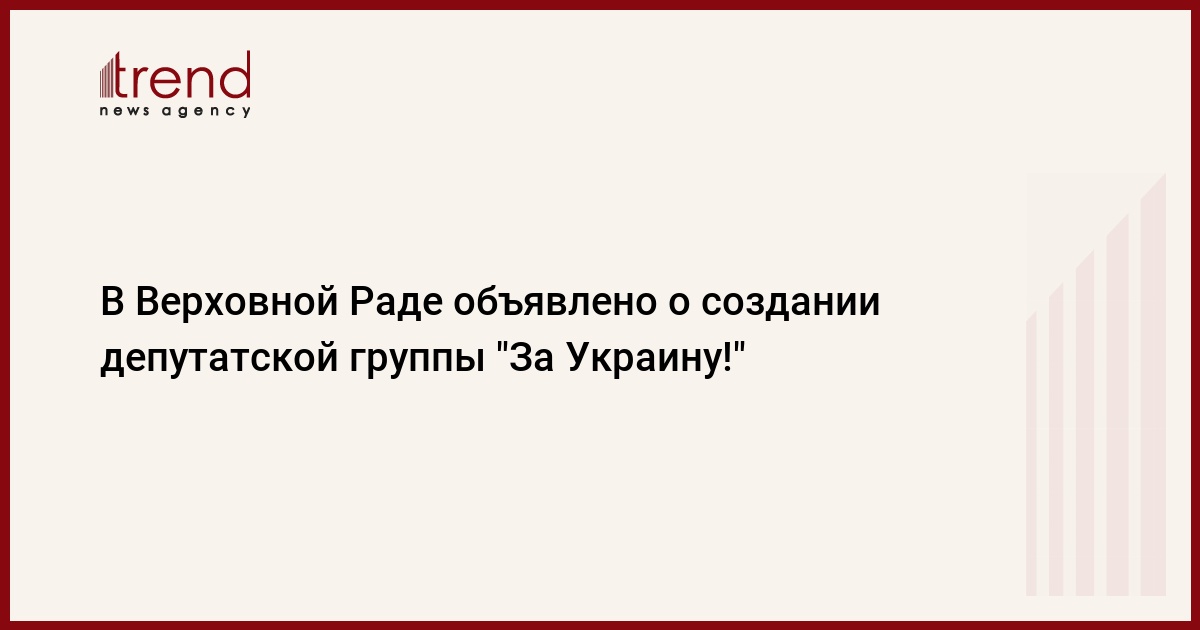 Украина, Киев, 24 декабря /корр. Trend З.Новсвитский/ В Верховной Раде объявлено о создании депутатской группы "За Украину!". Об этом народный депутат, экс-руководитель фракции "Наша Украина - Народная самооборона" ("НУ-НС") Вячеслав Кириленков сказал в среду во время заседания парламента.