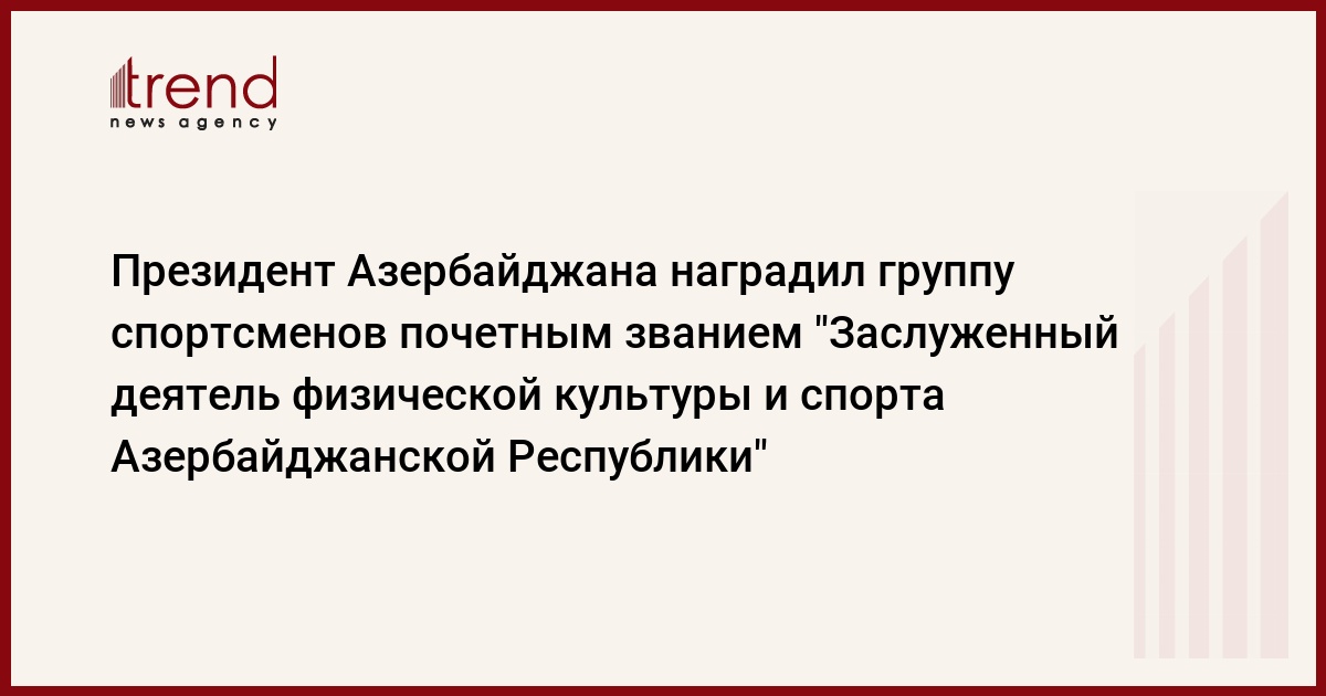 В пятницу президент Азербайджана Ильхам Алиев подписал распоряжение о предоставлении Натику Алиеву, Тофику Асадуллаеву, Акифу Исмайлову, Садыгу Садыгову и Эльчину Зейналову почетного звания "Заслуженный деятель физической культуры и спорта Азербайджанской Республики" за помощь в развитии азербайджанского спорта, распространяет государственное информагентство АзерТадж.