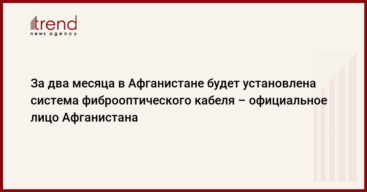По его словам, с целью улучшения услуг Интернета и связи министерство связи старается осуществить в ближайшие два месяца проект установки системы фиброоптического кабеля. "После осуществления проекта системы фиброоптического кабеля в Афганистане, страна сможет подсоединиться как к соседним странам, так и к магистрали фиброоптических кабелей, и цены на пользование Интернетом снизятся вдвое", - сказал Хади.