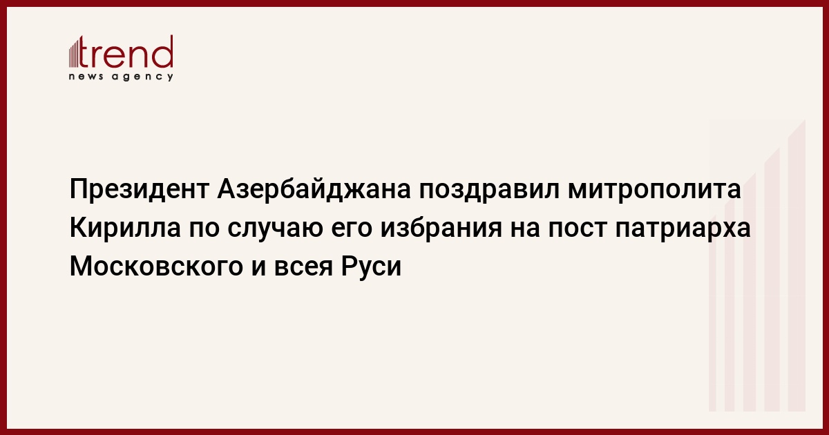 Президент Азербайджана Ильхам Алиев поздравил митрополита Кирилла с избранием на пост патриарха Московского и всея Руси.