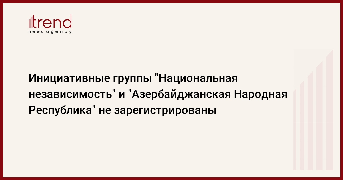 Азербайджан, Баку, 11 февраля /корр. Trend Дж.Бабаева/ На заседании Центральной избирательной комиссии (ЦИК) в среду не были зарегистрированы инициативные группы "Национальная независимость", учрежденная оппозиционной партией Национальной независимости (ПННА), и "Азербайджанская Народная Республика", учрежденная партиями, представленными в Союзе во имя демократии.