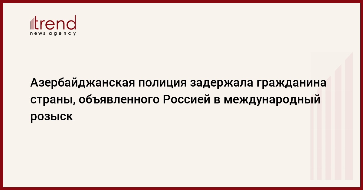 Азербайджан, Баку, 12 февраля /корр. Trend К.Зарбалиева/ Азербайджанская полиция задержала гражданина страны, объявленного Российской Федерацией в международный розыск.