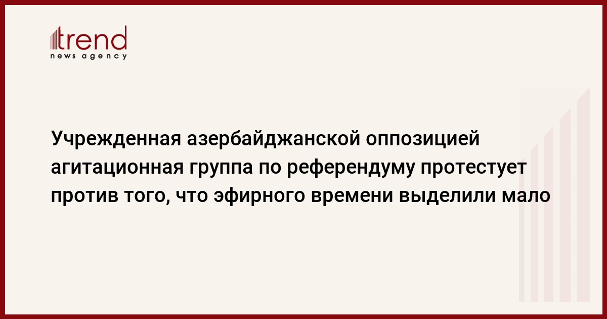 Азербайджан, Баку, 18 февраля /корр. Trend А.Гусейнбала/ Агитационная группа по референдуму, учрежденная азербайджанскими оппозиционными партиями, протестует против того, что бесплатного эфирного времени на телевидении и радио выделено мало.