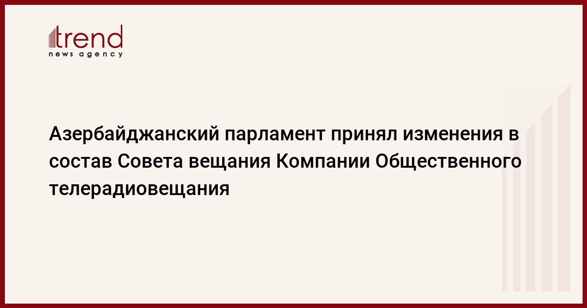 Во вторник на заседании парламента Азербайджана были приняты изменения в состав Совета вещания Компании Общественного телевидения и радио.