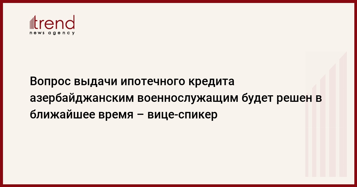 В ближайшее время начнется выдача ипотечного кредита военнослужащим, сказал первый вице-спикер Милли Меджлиса (парламента) Азербайджана.