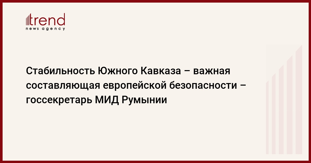 Азербайджан, Баку, 9 июня /корр. Trend Е. Остапенко/ Стабильность Южного Кавказа - важная составляющая всеобщей европейской безопасности, считает Богдан Ауреску, госсекретарь МИД Румынии по стратегическим связям.