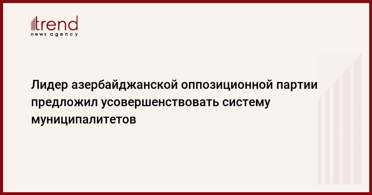 Лидер азербайджанской оппозиционной партии предложил усовершенствовать систему муниципалитетов.
