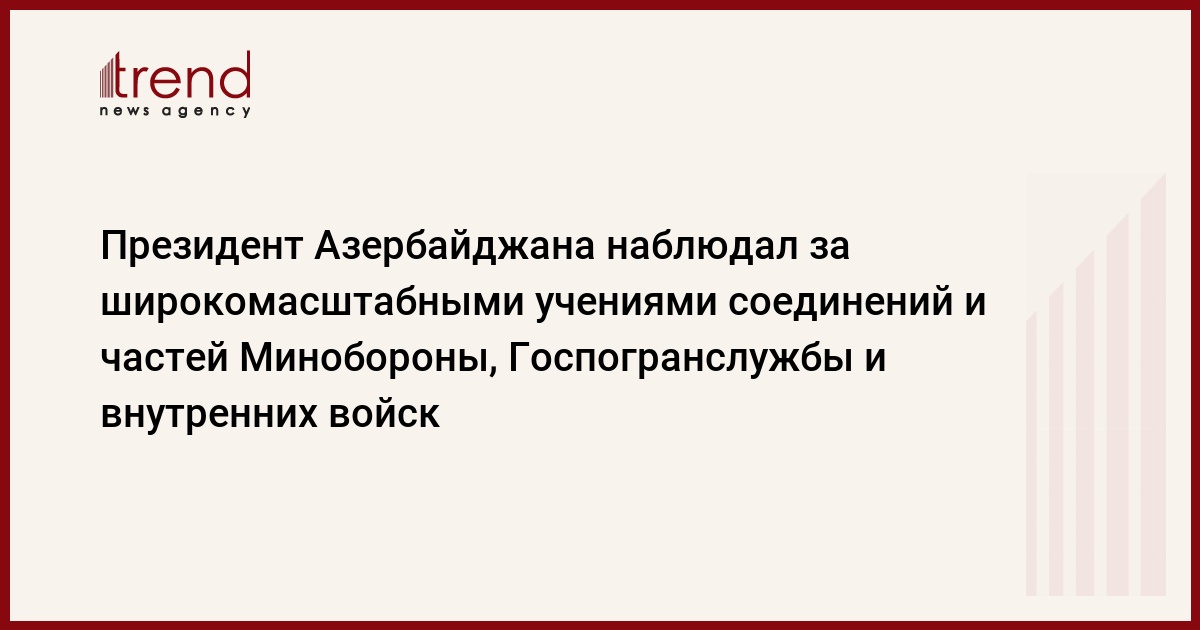 Президент Азербайджана Ильхам Алиев наблюдал в среду за основным этапом широкомасштабных совместных оперативно-тактических учений соединений и частей Министерства обороны, Государственной пограничной службы и внутренних войск, проведенных в честь 91-й годовщины создания Вооруженных сил Азербайджана, распространило информацию государственное информационное агентство АзерТАдж.