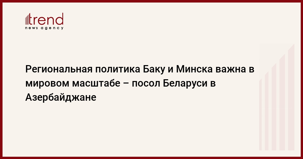 Региональная политика Минска и Баку схожа и важна не только для двух народов, но и в мировом масштабе, считает белорусский посол в Азербайджане Николай Пацкевич.