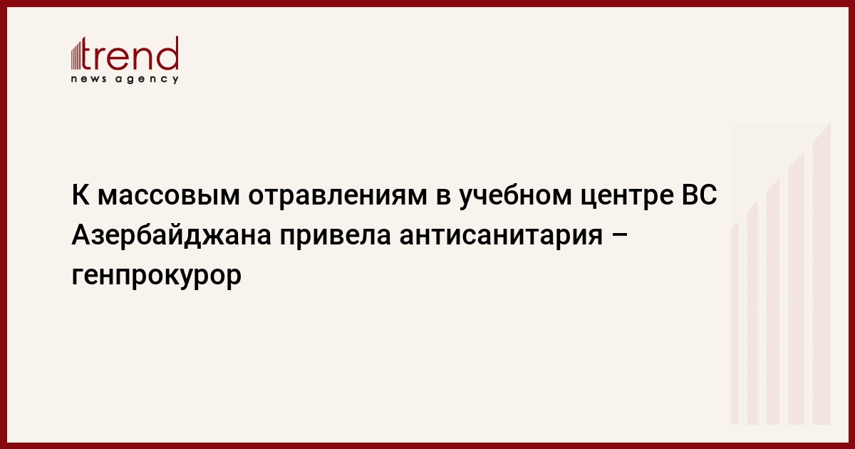 Причиной массовых отравлений в Общевойсковом учебном центре министерства обороны Азербайджана, находящемся в Гараэйбате, стала антисанитария, сказал в четверг журналистам генеральный прокурор страны Закир Гаралов.