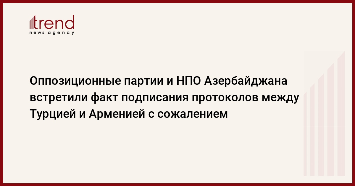 Оппозиционная партия также обеспокоена тем, что в результате подписания протоколов позиция армян усилится и их возможности по оказанию давления на Азербайджан в разрешении конфликта возрастут. "Наряду с пониманием того, какими политическими реалиями руководствовалась Турция, предпринимая свои шаги, и того, что она как авторитетное в регионе государство выполняла выпавшую ей историческую миссию, мы еще раз хотим убедиться, что условия этого соглашения не обернутся против политических интересов Азербайджана", - говорится в заявлении.