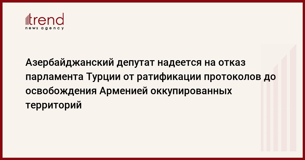 Депутат Милли Меджлиса (парламента) Азербайджана выразила надежду, что парламент Турции не ратифицирует протоколы Анкара-Ереван, если Армения не освободит оккупированные территории Азербайджана.