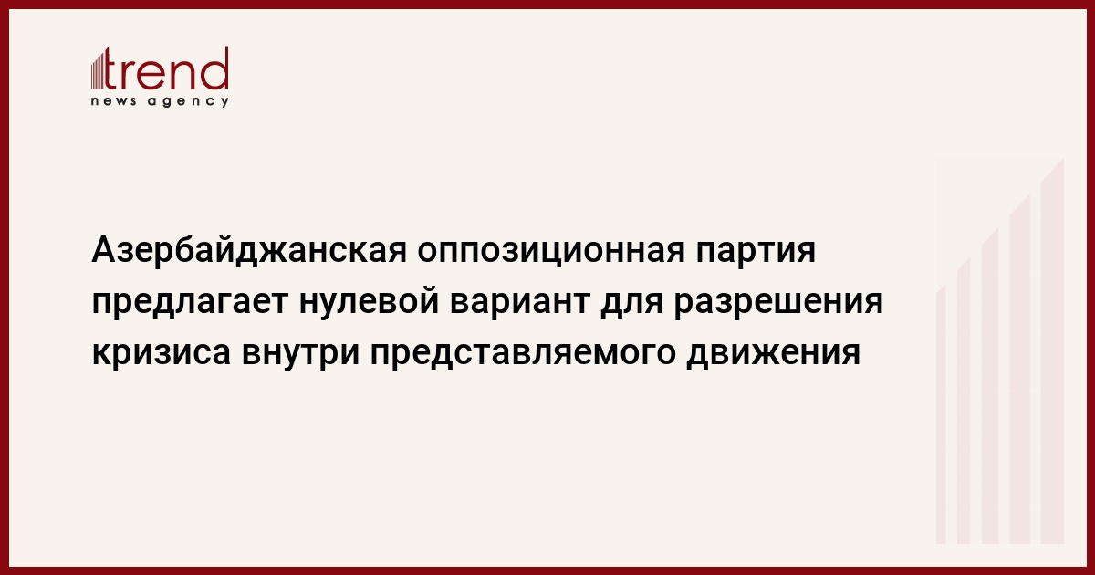 Азербайджанская оппозиционная партия предлагает нулевой вариант для разрешения кризиса внутри представляемого движения.