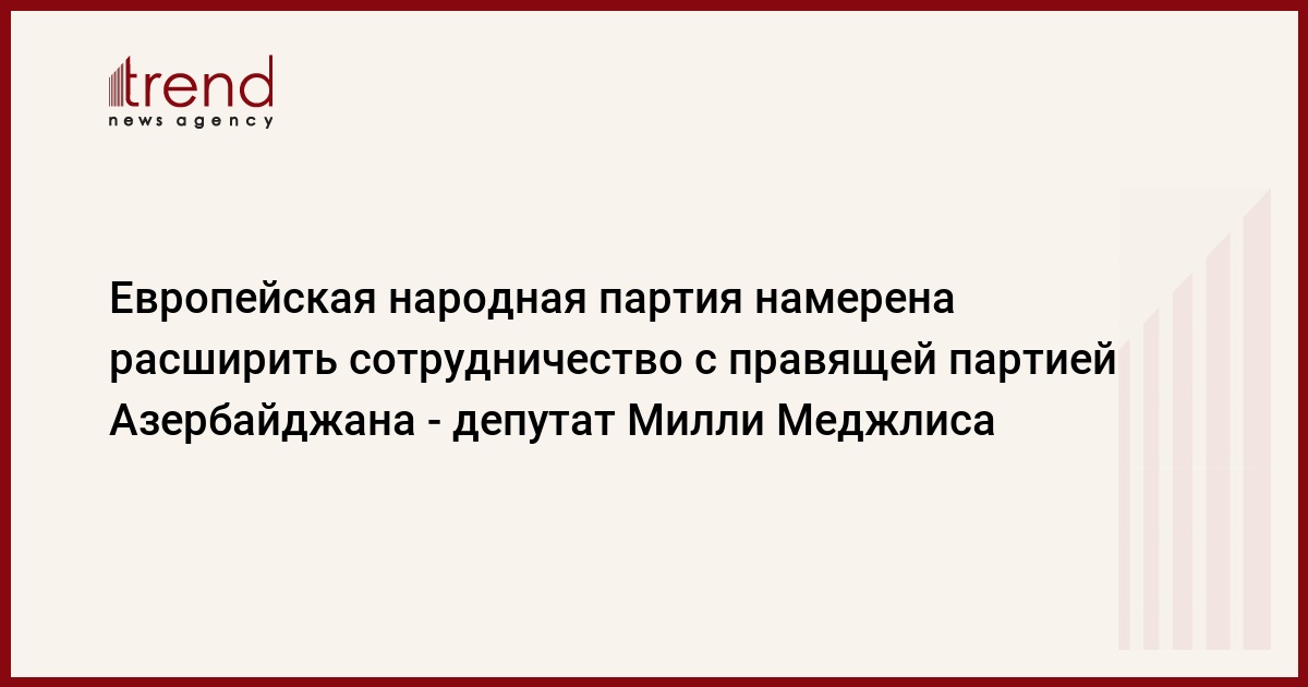 Исследовательская группа Европейской народной партии (ЕНП) во главе с президентом Вилфредом Мартенсом в ближайшее время намерена посетить Баку, в связи с принятием партии "Новый Азербайджан" (ПЕА) в ЕНП, сказал в интервью официальному сайту правящей партии "Ени Азербайджан" (ПЕА) во вторник депутат Милли Меджлиса (парламента) Азербайджана Асеф Гаджиев.
