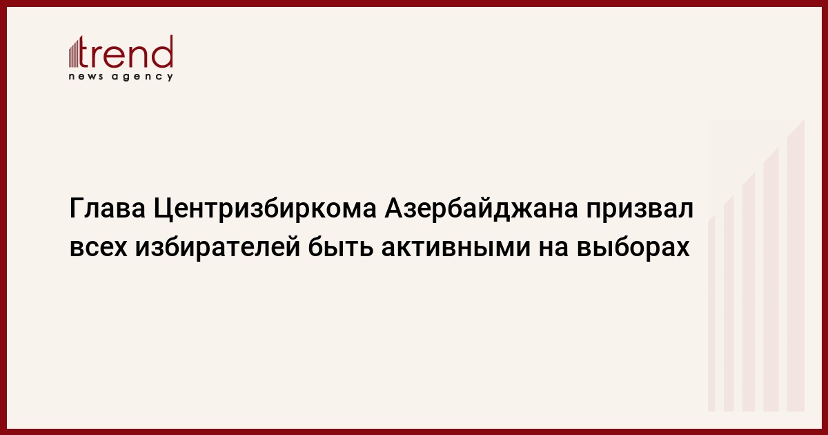 Перед началом голосования председатель Центризбиркома Азербайджана Мазахир Панахов призвал всех избирателей быть активными. В Азербайджане в среду в 08:00 по местному времени началось голосование в местные органы самоуправления.
