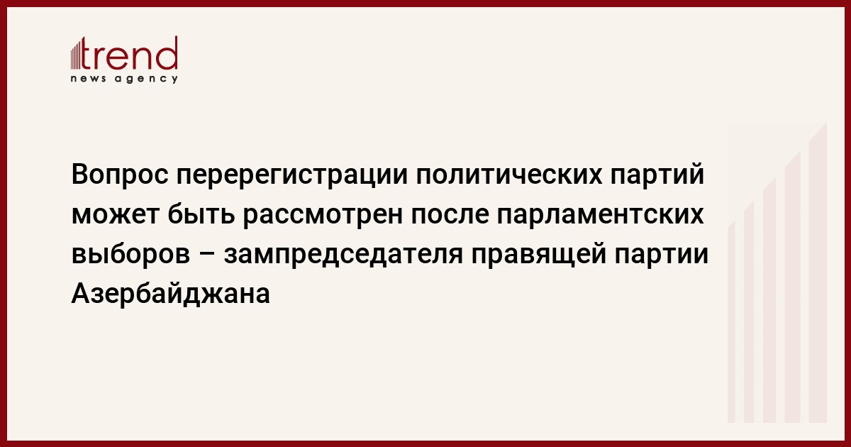Вопрос перерегистрации политических партий может быть рассмотрен после парламентских выборов, считает заместитель председателя правящей партии Азербайджана.