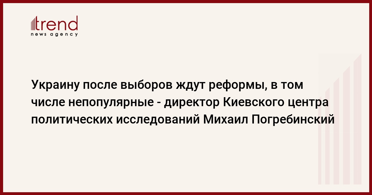 Украину после выборов президента при любом исходе ждут реформы, в том числе и непопулярные, считает директор Киевского центра политических исследований и конфликтологии Михаил Погребинский.