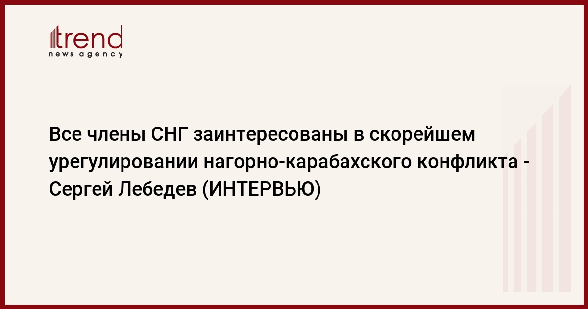 Интервью Европейской редакции Trend с председателем исполкома - исполнительным секретарем СНГ Сергеем Лебедевым, в преддверии заседания Совета министров иностранных дел СНГ в Москве, которое состоится 26 марта.