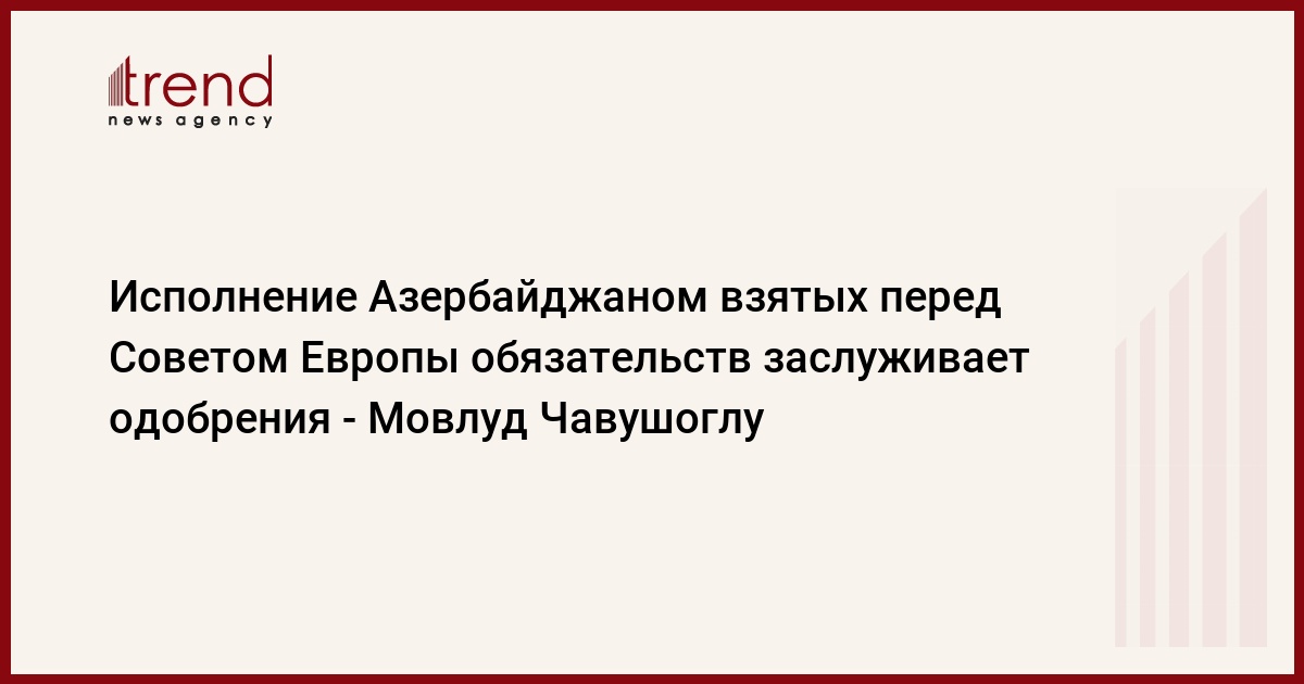 "Азербайджан выполнил большинство обязательств, взятых перед Советом Европы, что заслуживает одобрения", - сказал в среду на встрече с членами политических партий, представленных в Милли Меджлисе, председатель ПАСЕ Мовлуд Чавушоглу.